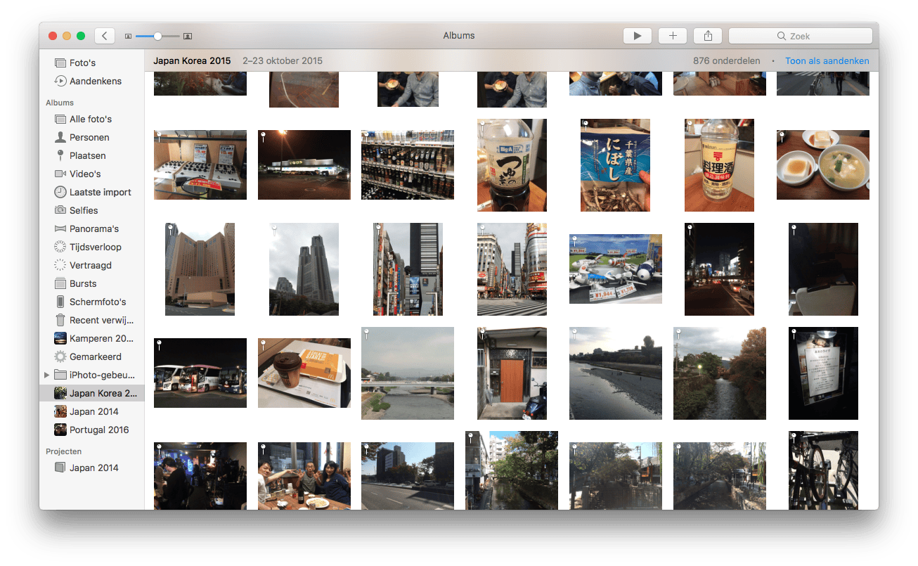 De foto’s vind je vervolgens allemaal terug als je links op Laatste import klikt. Maak een nieuw album aan door voor Archief / Nieuw album te kiezen en geef een naam op. Selecteer de foto’s waarvan je een fotoboek wilt maken en sleep de selectie naar je nieuwe album dat inmiddels ook aan de linkerkant is te vinden.