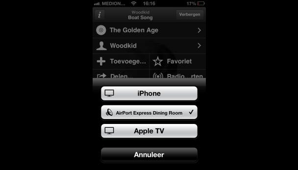 Met de Spotify-app stream je de muziek naar een AirPort Express, Apple tv of naar draadloze AirPlay-luidsprekers.