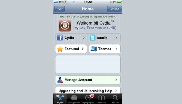 Na installatie van Whited00r heb je eveneens de alternatieve app store Cydia op je iPhone staan. Hier kun je interessante apps downloaden die alleen voor een iPhone met jailbreak beschikbaar zijn.