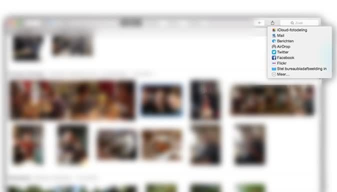 Waar je voorheen nog in je instellingen moest duiken om een foto als bureaubladachtergrond te gebruiken, heb je tegenwoordig alleen nog maar de Foto's-app nodig. Open Foto's, selecteer een foto en druk op de deelknop (het vierkantje met het pijltje naar boven). Klik op Stel bureaubladafbeelding in om de foto op je desktop te zetten. Lees ook: Maak je foto's mooier in Foto's voor OS X.