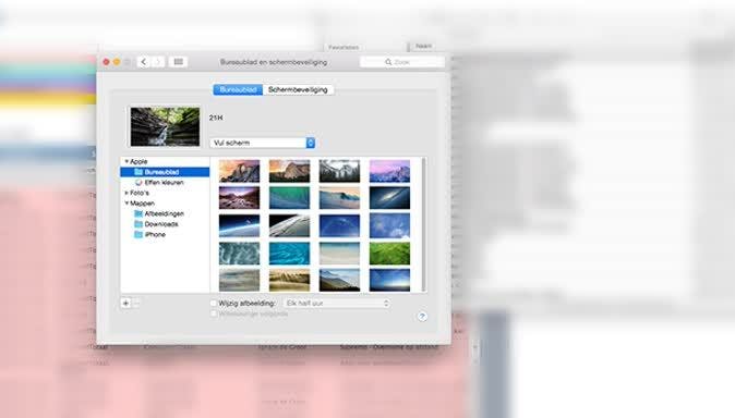 Om een reeks foto langs te laten komen als achtergrond, maak je een map aan op je Mac met de foto's die je daarvoor wil gebruiken. Vervolgens ga je opnieuw Systeemvoorkeuren > Bureaublad en schermbeveiliging > Bureaublad en klik je op het plusteken. Voeg nu de map toe en vink vervolgens Wijzig afbeelding aan.