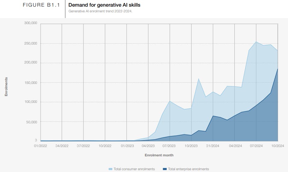 Volgens het Future of Jobs Report groeit onze AI-afhankelijkheid de komende jaren gestaag door.