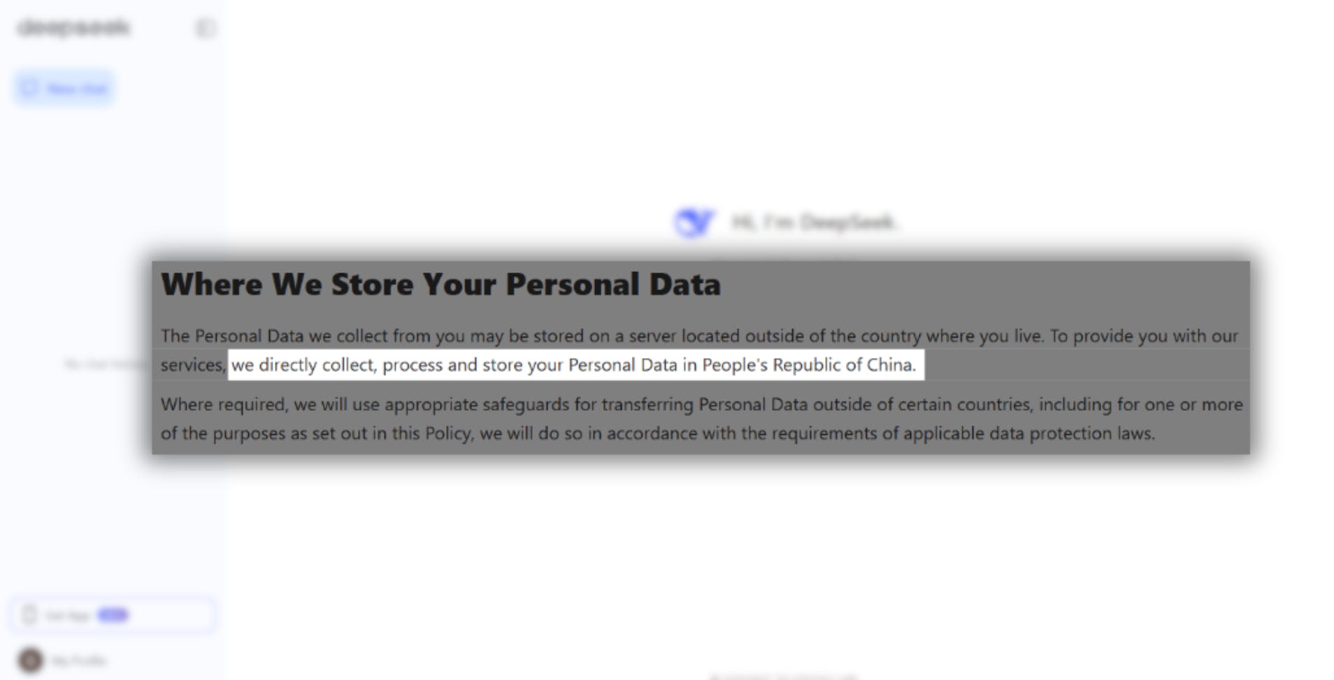 Daarnaast wordt er gevreesd dat overheden de gegevens die gebruikers met AI-modellen delen, kunnen opeisen. In het privacybeleid van DeepSeek staat bijvoorbeeld dat het persoonsgegevens (denk aan chat- en zoekgeschiedenis en zelfs de toetsaanslag) in China opslaat. Volgens de wetten van het land heeft de Chinese overheid het recht om gegevens op te eisen van binnenlandse bedrijven wanneer zij daarom vraagt. Veel regeringen hebben hun werknemers dan ook verboden om DeepSeek op hun werktelefoons te installeren.