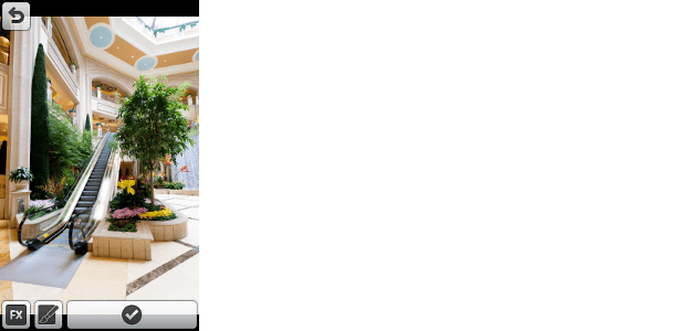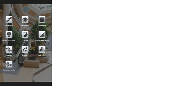 Druk in Camera MX bijvoorbeeld op Witbalans en breng met uw vinger het pipetje naar iets wat wit, zwart of grijs hoort te zijn. U ziet de kleuren in de foto meteen veranderen. Als u niet goed kunt zien of u het pipetje op de goede plaats hebt gezet, kunt u in het vierkantje linksboven kijken, die vergroot het stuk waar u het pipetje neerzet, zodat u precies kunt zien of u goed zit. Met deze app kunt u ook een scheve foto rechtzetten (Horizoncorrectie) of een andere uitsnede (Knippen) maken. Tik na een aanpassing altijd op het vinkje om de wijziging te behouden.