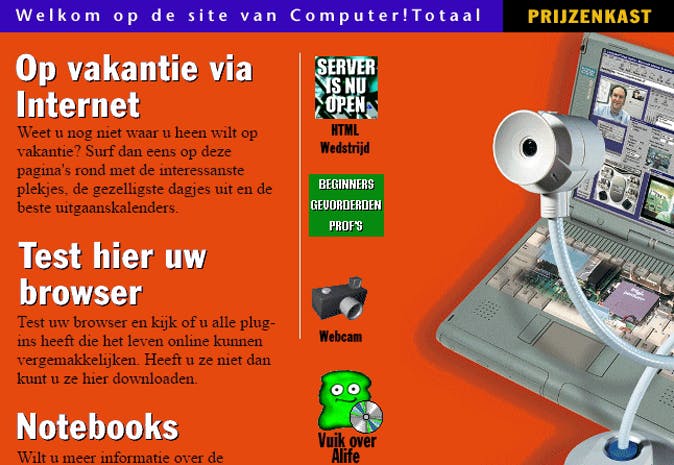 Kies een jaar, maand, dag en zelfs tijdstip uit en klik erop om de website te bekijken zoals hij jaren geleden was. Zo zag bijvoorbeeld www.computertotaal.nl er in de begintijd uit... Toch iets beter nu, of niet?