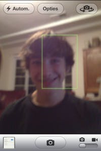 Wanneer de camera een gezicht detecteert, dan zal er een groen kader om het gezicht worden weergegeven, om aan te geven dat op dit gezicht zal worden scherpgesteld. Zo kunt u dus eenvoudig zien wanneer de technologie wordt ingeschakeld. Nadeel is wel dat het alleen werkt als u de camera frontaal op het gezicht richt, gezichten van de zijkant werken niet. Zodra u het kader hebt zien activeren, kunt u de foto nemen. Het is overigens niet zo vreemd dat de nieuwe technologie wel werkt op de 4S en niet op de 4 en 3GS (en 3). Hoe beter de camera en de lens, hoe groter de scherptediepte (het verschil tussen het scherpe deel en het onscherpe deel), dus de mogelijkheid om scherp te stellen op de belangrijkste onderdelen (de mensen) is geen overbodige luxe.