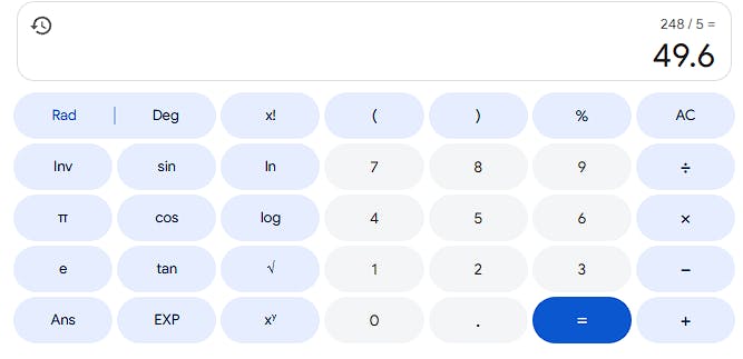Even snel een sommetje uitrekenen doe je gewoon door de formule in de adresbalk in te voeren. Je hoeft daar dus geen losse applicatie voor te openen. Voer bijvoorbeeld 248/5 in om te bepalen hoeveel je per persoon kwijt bent in een restaurant.