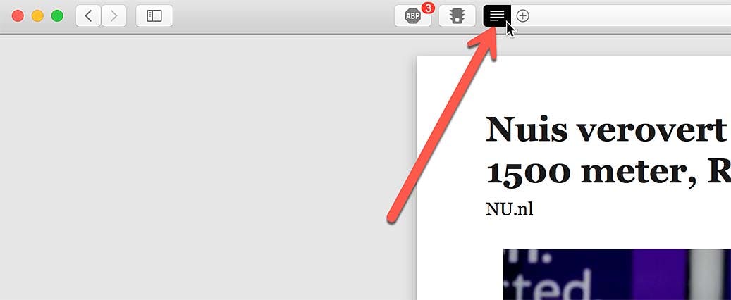 Om een pagina zonder al te veel onnodige opsmuk te lezen in Safari is de zogeheten leesmodus beschikbaar. Deze activeer je door op de knop met de streepjes direct links van het webadres te klikken. Dit trucje werkt niet bij álle pagina's even goed, maar als het werkt krijg je een soort van boekpagina te zien. Extra tip: via de eerder genoemde methode om PDF's te maken, kan een PDF ook in deze weergave bewaard worden. Dat levert veelal een zeer printvriendelijk en prettig leesbaar eindresultaat op.