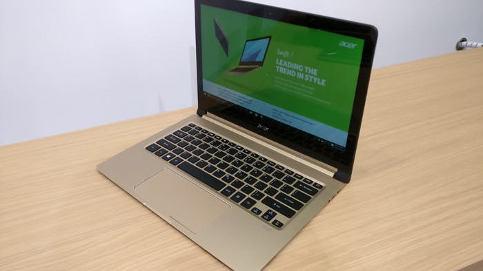 De Swift 7 is de meest opvallende nieuwe laptop van het bedrijf. Het apparaat heeft een full HD-scherm en voelt verrassend stevig aan, volgens Acer met name door het Gorilla Glass-display dat kras- en stootschade voorkomt. Door zijn dunne formaat weegt de laptop slechts 1,12 kg. Ondanks zijn dunne vorm heeft het apparaat volgens Acer een accuduur tot wel 9 uur. Het apparaat heeft een i5-processor, maar kan optioneel met betere specificaties worden geleverd.