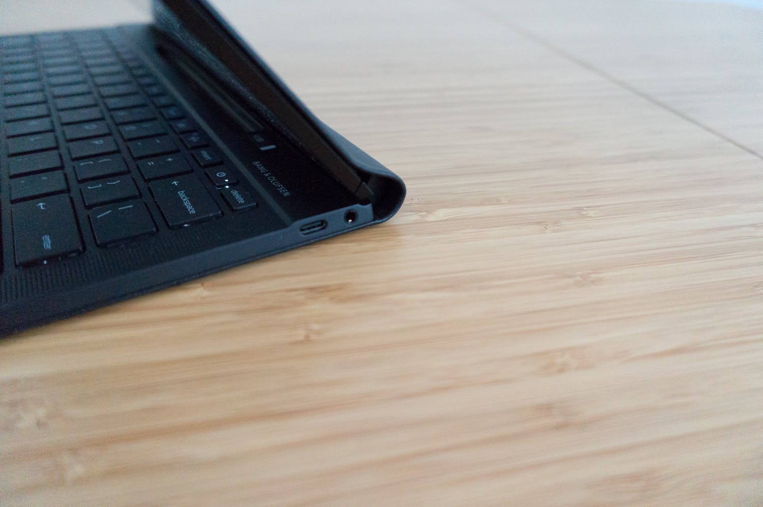 Het is prettig werken op de Folio, zeker als je veel aan tekstverwerking doet. Het toetsenbord laat zich alleen maar omschrijven als fantastisch, dit een van de comfortabelste laptoptoetsenborden die ik ooit gebruikt hebt. De aanslag heeft genoeg travel die wordt gecombineerd met een duidelijk voelbare klik. Het geheel voelt ook opvallend solide aan. De toetsverlichting is in twee helderheidsstanden in te stellen. Onder het toetsenbord heeft HP een touchpad geplaatst die ook bijzonder comfortabel is, de ingebouwde knop heeft een erg prettige klik. Je kunt de laptop ook bedienen met een aanraakscherm en dat scherm heeft ook ondersteuning voor een actieve stylus. Die stylus krijg je meegeleverd en HP heeft bovendien een handige opbergplek gevonden. De stylus ligt als je hem niet gebruikt in een vakje boven het toetsenbord en wordt daar ook direct opgeladen zodat je altijd een volle stylus hebt. Een uitsparing naast de pen zorgt ervoor dat je deze uit het vakje kunt halen. De pen plakt dankzij een magneet in het slot en de magneet is zo sterk dat de pen automatisch in de goede oriëntatie draait, zelfs als je hem ondersteboven in het vakje stop. Je hoeft dus niet bang te zijn dat de laadcontacten geen contact maken. Het is een oplossing die in gebruik superieur is aan het lusje dat je vaak ziet om een pen mee te nemen. In datzelfde vakje vind je overigens ook het uitschuifbare simkaartslot voor de mobiele internetverbinding dat je eenvoudig kunt openklikken als de pen verwijderd is.