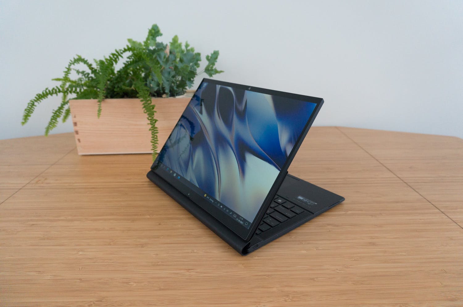 Qua aansluitingen krijg je niet heel veel, maar voor wat het is voldoet het. Uitbreiden kan in de vorm van twee usb-c-poorten die beide op een Gen1-snelheid van 5 Gbit/s werken. Ze ondersteunen allebei zowel het opladen van de notebook als het aansluiten van een scherm. Handig is dat er zowel links als rechts een usb-c-poort geplaatst is. Aan de rechterkant vind je nog een 3,5mm-headsetaansluiting naast de usb-poort. Draadloze verbindingen zijn er in de vorm van wifi 6, bluetooth 5.2 en op de geteste uitvoering ook nog een 4G-modem.