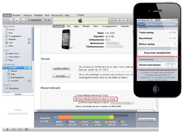 Voorkom een overvolle iCloud: maak een reserveokopie van uw iPhone/iPad in iTunes.