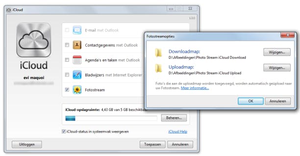 Zodra u het iCloud Control Panel opent, kunt u zelf aangeven wat u precies wenst te synchroniseren met uw pc. Om foto's te syncen hebt u, in tegenstelling tot Mac, geen speciale software nodig. Wanneer u Photo Stream aanvinkt, kunt u via Options aangeven in welke map foto's geüpload en gedownload moeten worden. Vervolgens kunt u simpelweg foto's via Windows Verkenner van en naar uw iPhone of ander iToestel overzetten. Om e-mail, contactgegevens of agenda's en taken te synchen via iCloud hebt u Outlook nodig. Het volstaat hier om gewoon aan te vinken wat u wilt synchroniseren. Bladwijzers synchroniseren via iCloud Control Panel for Windows gaat helaas uitsluitend via Internet Explorer en Safari. iCloud Control Panel for Windows is een prima tool indien u uw bestanden tussen iCloud.com en uw pc op elkaar wilt afstemmen.
