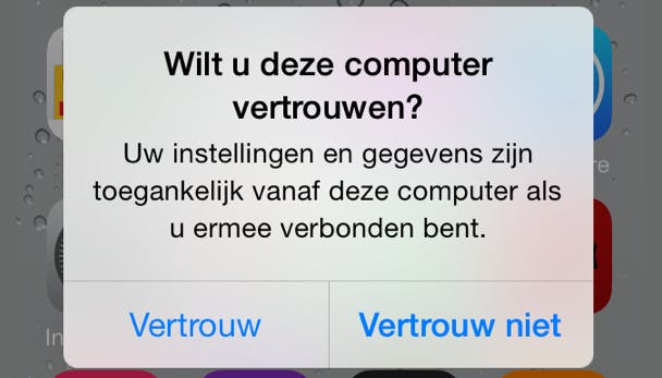 Het kan zijn dat je iOS-apparaat vraagt of het de computer kan vertrouwen.