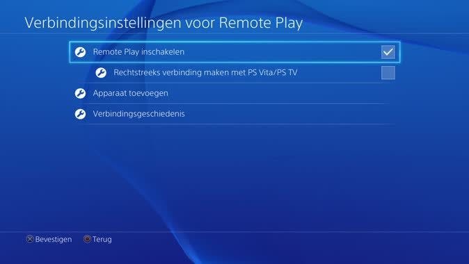 Je activeert Remote Play eenvoudig op je PS4. Ga hiervoor naar Instellingen / Verbindingsinstellingen voor Remote Play en vink de optie Remote Play inschakelen aan. Verder geef je de gameconsole de status van primaire PS4. Navigeer naar Instellingen / PlayStation Network/Accountbeheer / Activeren als je primaire PS4 en bevestig met Activeren. Fijn is dat Remote Play ook werkt in de rustmodus, mits de internetverbinding actief is. Ga in dat geval naar Instellingen / Instellingen voor energiebesparing / Functies instellen die beschikbaar zijn in de rustmodus om dat te regelen.