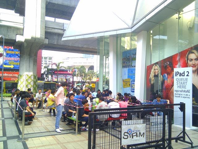 Vanaf vandaag is de iPad 2 ook in China te koop. Er duiken hier en daar al weer aardig wat foto's op van kilometers lange rijen voor de Apple Store. Ook in Thailand is het apparaat vanaf vandaag verkrijgbaar. Het iPad 2 virus slaat weer om zich heen!