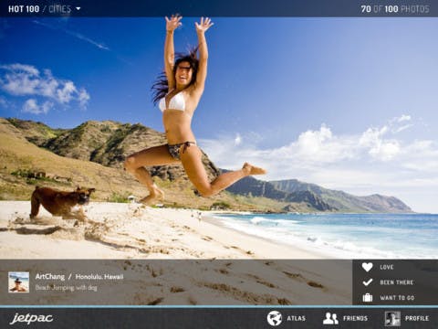Jetpac is een app die de vakantiefoto's van jouw Facebook vrienden verandert in een visuele reisgids. De app weet op slimme wijze foto's onder te verdelen op locatie en is een bijzonder goede inspiratie voor de vakantie. Helaas werkte de app niet op alle geteste apparaten.