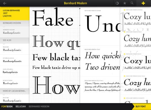 Het aanschaffen van lettertypes kan via een externe website, waardoor de app enkel als showroom dient voor de verschillende lettertypes. Gezien deze eenzijdige functionaliteit is de app wel erg hoog geprijsd. Het geeft erg het idee dat je eerst een toegangskaartje moet kopen bij de ingang van een winkel.