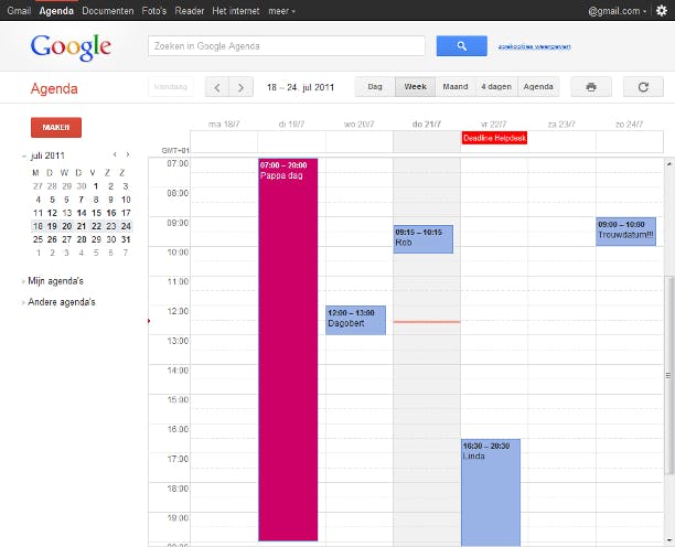 Hebt u geen Gmail-account, ga dan naar Gmail en klik op Een account maken. Vul de gegevens in en ga naar uw account en bekijk uw agenda.