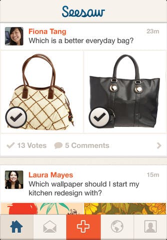 Met Seesaw is het namelijk mogelijk om mensen van over de hele wereld advies te vragen wanneer jij even niet kan kiezen. Dit kun je doen door een of meerdere foto's te uploaden en hierbij een vraag te stellen. De vraag kan hierbij zijn te beantwoorden met een eenvoudig 'ja' of 'nee', maar het is ook mogelijk om de wereld meerdere antwoorden voor te leggen.