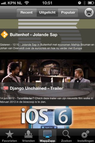 WappZapp is een app waarmee filmpjes van onder andere YouTube en uitzending gemist naar een televisie of computer kunnen worden Gezappt. Dit werkt goed, maar aangezien de ondersteunde apparaten ook zonder de app deze video's kunnen afspelen, dient de app meer als gebruiksvriendelijke zoekmachine.