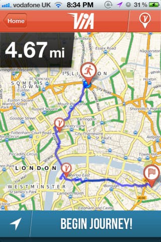 VIA is een navigatie app die speciaal is ontwikkeld voor hardlopers. Helaas is de gesproken navigatie soms moeilijk te volgen en het inladen van kaarten duurt erg lang. Een leuke toevoeging van de app is dat er wordt bijgehouden hoe je presteert tijdens het hardlopen.