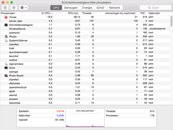 In de Activiteitenweergave app kun je onder andere het CPU-verbruik van je Mac controleren.