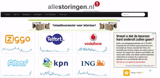 Bij allestoringen.nl worden de storingen door mensen gemeld