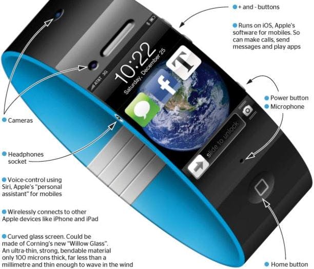 In de aanvraag omschrijft Apple een gadget die om de pols 'geslagen' kan worden, waarbij de hele band van een buigbaar beeldscherm is voorzien. Doordat het klikmechanisme zich aanpast aan de pols, zou het apparaat op iedere pols stevig blijven zitten.