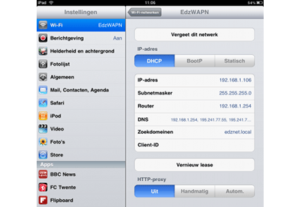 Voor mobiele apparaten als een iPad is DHCP de geijkte methode om een IP-adres te krijgen.