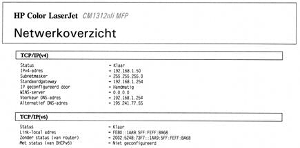 Veel netwerkprinters kunnen een rapport afdrukken met de eigen configuratie, waarop ook de netwerkgegevens kunnen worden teruggevonden.