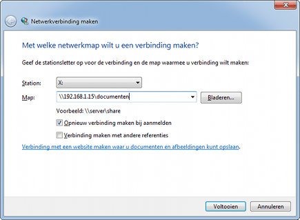 Koppel een gedeelde map via een netwerkverbinding aan de pc.