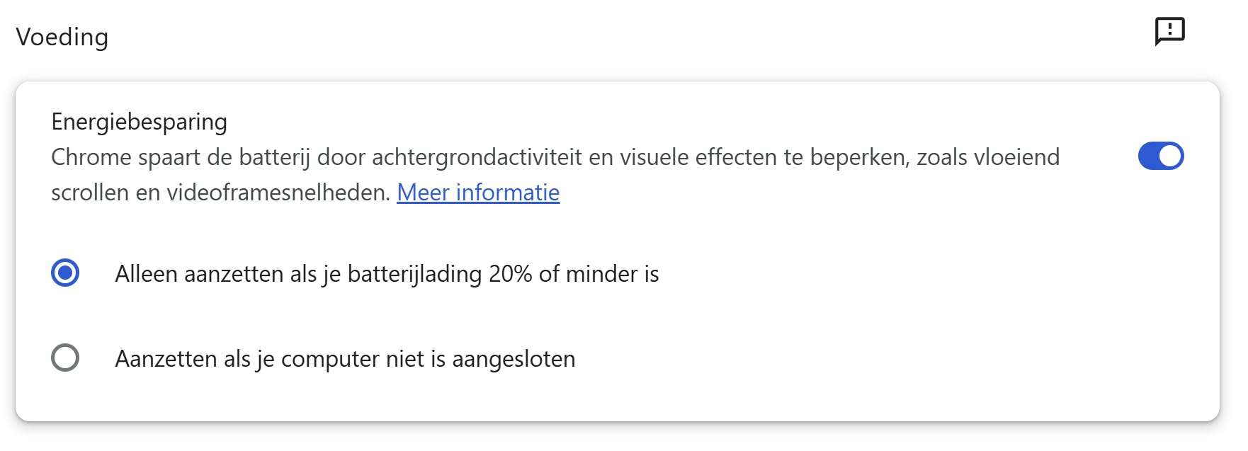 Laat Chrome je ook helpen bij het besparen van energie.