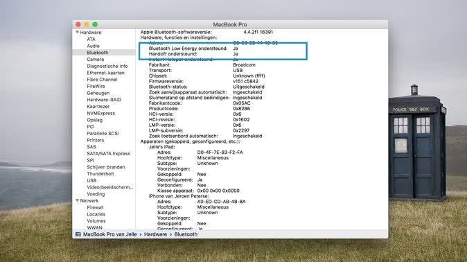 Niet alle Mac en iOS apparaten zijn geschikt voor Continuïteit. Om dit op je Mac te checken, hou je de alt-toets (Option op sommige toetsenborden) ingedrukt, klik je op het Apple logo linksboven, en vervolgens op Systeeminformatie. Deze optie is alleen beschikbaar als je de alt-toets hebt ingedrukt. Klik in het scherm dat nu verschijnt op Bluetooth. Als zowel Bluetooth Low Energy ondersteund en Handoff ondersteund op 'Ja' staan, is je Mac geschikt.