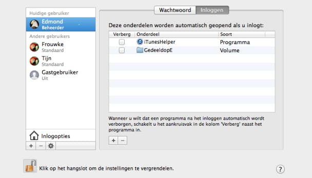 Tip 08 Voeg de gedeelde map toe aan de lijst met programma's waarop OS X automatische inlogt.
