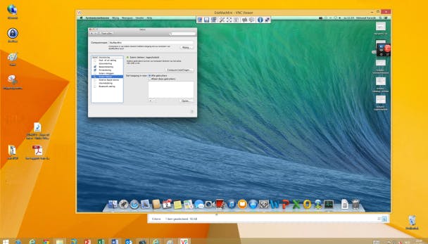 Omgekeerd kan het ook handig zijn een Mac over te nemen vanaf een Windows-pc. Een veelgebruikte methode is met het programma TeamViewer, maar het kan mooier. OS X heeft namelijk net als Windows een eigen protocol voor beheer op afstand. Ga via het Apple-logo naar het menu Systeemvoorkeuren / Delen en zet een vinkje bij Extern Beheer. Controleer of er een vinkje staat bij Alle gebruikers. Klik dan op Computerinstellingen en voer een wachtwoord in bij VNC-viewers kunnen het scherm beheren met het volgende wachtwoord.