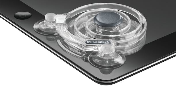 De Logitech Joystick for iPad is een klein stukje plastic dat u met behulp van zuignapjes op uw iPad vastklemt. In het midden zit een plastic cirkeltje waar uw duim op rust en de twee zuignapjes plaatst u aan de linker- of rechteronderkant van uw iPad-scherm. Doordat de knop met een spiraalconstructie aan de zuignapjes vast zit, kunt u de zwarte knop alle kanten uit bewegen. Aan de onderkant van de knop bevindt zich een speciaal stukje plastic zodat de iPad weet waar de knop zich op het scherm bevindt. De constructie oogt een beetje goedkoop, maar na het vastdrukken van de zuignapjes op uw iPad blijft de joystick gemakkelijk zitten en voelt stabiel aan.