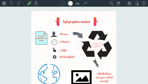 Voor we beginnen, willen we benadrukken dat er wel degelijk wat talent voor nodig is om een infographic te maken zoals de professionals het doen. Maar net als met videobewerking moet je onthouden: niet alle video's hoeven op RTL 4 en niet alle infographics hoeven van drukkwaliteit te zijn. In deze workshop leren we je hoe je snel een te gekke infographic kunt maken in de gratis app Grafio Lite. We leren je de basisinterface van de app, en vertellen je met welke elementen je een infographic in elkaar draait en deelt. Het enige wat jij nodig hebt, is een iPad, wat tijd, geduld en inspiratie. Let's go.