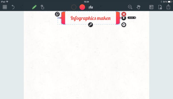 In bepaalde opzichten werkt de interface verwarrend. Je ziet bijvoorbeeld bovenin een pictogram met twee letters erin. Niet gek als je bedenkt dat je hierop moet drukken om een tekstelement toe te voegen aan je document. Dit is echter niet het geval. Je voegt een tekstelement toe, door tweemaal snel te tikken op een lege plek in je canvas. Er wordt dan een tekstveld toegevoegd waar je direct in kunt typen.
