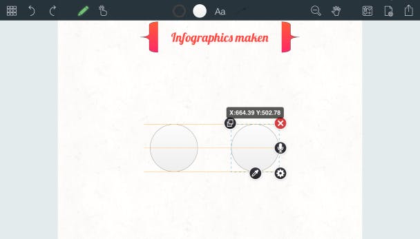De kunst van een mooie infographic is uiteraard dat alle elementen mooi onderling zijn uitgelijnd (oftewel, het mag ogen als chaos, in werkelijkheid staat niets schots en scheef). Grafio springt daar op een slimme manier mee om. Wanneer je een element versleept, dan verschijnen er kleine lijntjes in beeld die je laten zien hoe de elementen zich onderling tot elkaar verhouden. Ze kun je dus eenvoudig elementen ten opzichte van elkaar centreren, horizontaal of verticaal uitlijnen, enzovoort. Dat helpt echt enorm.