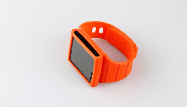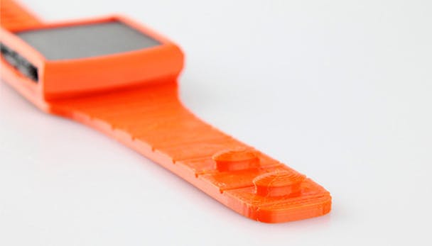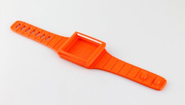 De printbare polsband (hier te downloaden), ontworpen door Stewart Davies die is afgestudeerd aan de University of Edinburgh, is bedoeld voor Apple's zesde generatie iPod nano. De polsband is gemaakt van een flexibel thermoplastisch filament met de naam Ninjaflex.