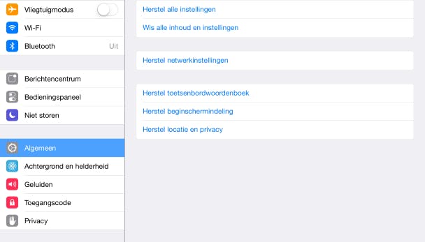 Is de iPad die je voor kinderen geschikt wilt maken eerder door volwassenen in gebruik geweest? Dan is het verstandig om het apparaat eerst even op te schonen. Haal alle overtollige apps eraf, verwijder foto's en films van het apparaat, haal de accounts van e-mail, Berichten, FaceTime, Twitter, Facebook, iCloud eruit, en noem maar op. Dat is nog best veel werk. Wil je met een schone lei beginnen, dan is het sneller als je de iPad even reset. Lees ook: 12 keer een nieuw leven voor je oude iPad.