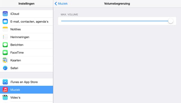 Luisteren de kinderen graag naar muziek op de iPad of spelen ze games en kijken ze naar films? Als ze hier oordopjes bij gebruiken is het belangrijk dat ze het geluid niet te hard zetten, om de jonge oren te beschermen en gehoorbeschadiging te voorkomen. Je kunt het geluid begrenzen om problemen voor te zijn. Dat doe je via Instellingen / Muziek. Kies de optie Volumebegrenzing en gebruik de schuifbalk om het maximale volume te begrenzen tot een aanvaardbaar niveau.