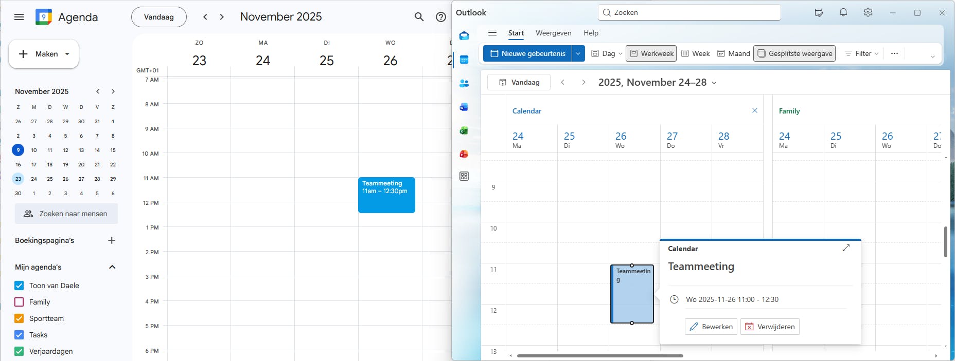 Misschien herken je het: in jouw gezin gebruikt de een de Agenda-app op iOS, de ander Google Agenda via het web of mobiel en nog iemand anders werkt met de desktopversie van Microsoft Outlook en kijkt af en toe op outlook.com. Zulke situaties maken het delen van volledige agenda’s of afzonderlijke afspraken natuurlijk complexer. Nog lastiger wordt het wanneer iemand binnen het Google-ecosysteem wil blijven, maar op het werk met een Microsoft-agenda moet werken en beide agenda’s wil synchroniseren.
