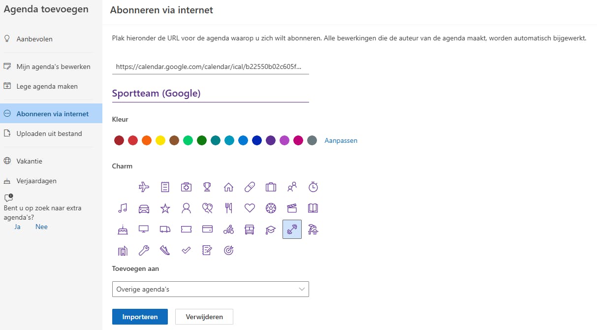 Let erop dat dit telkens eenrichtingsverkeer is: je kunt de geïmporteerde agenda bekijken, maar niet bewerken.