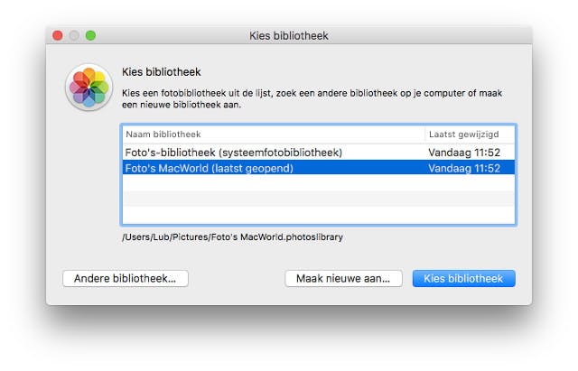 Meerdere bibliotheken gebruiken met Foto's voor Mac