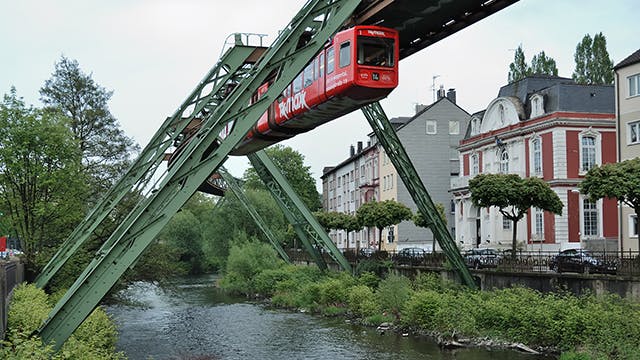 Dé monorail bestaat niet. Er zijn drie varianten. De meest klassieke daarvan is de ‘Schwebebahn’ of zweefbaan (zie boven), waarbij de trein onder een stalen balk hangt. In 1901 opende de Duitse stad Wuppertal een zweefbaan die nog altijd in bedrijf is. Het systeem vormde het antwoord op het probleem dat er in het nauwe dal waar de stad gelegen is geen ruimte bestond voor een traditionele tramverbinding. De Schwebebahn kon echter over de rivier de Wupper worden gehangen (zie foto). Over de esthetische kwaliteit van deze oplossing valt te twisten, maar slim was het wel. En veilig. Het enige ongeluk vond plaats in 1999 en kostte vijf mensen het leven.