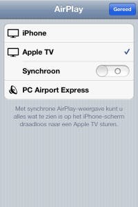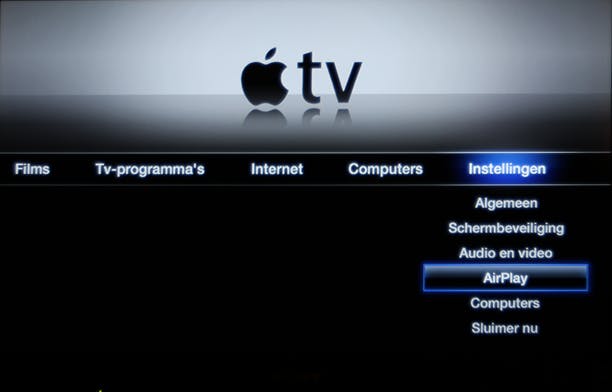Voor audio zijn er veel apparaten beschikbaar met AirPlay-ondersteuning die uw draagbare Apple-apparaat zullen herkennen en de audio draadloos kunnen afspelen. Helaas is er op het gebied voor video nog maar weinig ondersteuning voor AirPlay. Het is een geluk bij een ongeluk dat Apple onlangs de Apple TV in Nederland op de markt heeft gebracht. Dit apparaat, dat 119 euro kost in de Apple Store, heeft uiteraard volledige AirPlay-ondersteuning en is dan ook de makkelijkste manier om deze functie te gebruiken. Dat is natuurlijk wel een flink bedrag en een kabeltje is de helft goedkoper, maar het grote voordeel van Apple TV is dat u nu rechtstreeks films kunt huren of kopen via iTunes, want ook die functionaliteit heeft Apple onlangs gelanceerd in Nederland. We noemen dat nu bewust even, omdat het een reden kan zijn om toch voor dit apparaat te kiezen, terwijl u zonder deze kennis wellicht een kabel zou hebben gekocht. In deze uitleg zullen we dan ook de Apple TV gebruiken.