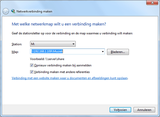 In deze tip kunt u lezen hoe gemakkelijk het is om verbinding te maken met uw Mac in het netwerk. Hebt u ervoor gekozen om lees- en schrijfrechten voor gedeelde mappen toe te kennen aan iedereen, dan hoeft u verder helemaal niets meer te doen. Als u Windows Verkenner opent, wordt uw Mac automatisch getoond onder het kopje 'Netwerk'. U kunt simpelweg op de computernaam klikken en door de gedeelde mappen bladeren, als ware het een 'gewone' pc. Hebt u voor meer veiligheid gekozen en een gebruikersaccount aangemaakt, dan moet een extra stap worden gezet. Klik in het linkerdeelvenster van de verkenner op Computer en vervolgens in het menu bovenin op Netwerkverbinding maken. Kies een stationsletter (bijvoorbeeld de M voor Mac) en typ \\xxx.xxx.x.x\gedeeld in het invoerveld, waarbij u de x'en vervangt voor het IP-adres dat u in tip 2 hebt genoteerd, en het woord 'gedeeld' door de naam van de gedeelde map. Vink de opties Opnieuw verbinding maken bij aanmelden en Verbinding maken met andere referenties aan. De laatstgenoemde optie vinkt u aan omdat de gebruikersnaam en het wachtwoord van uw Windows-account waarschijnlijk niet overeenkomen met de gebruikersnaam en het wachtwoord van het account dat u op de Mac hebt aangemaakt. Is dat wel het geval, dan hoeft u de genoemde optie niet aan te vinken.