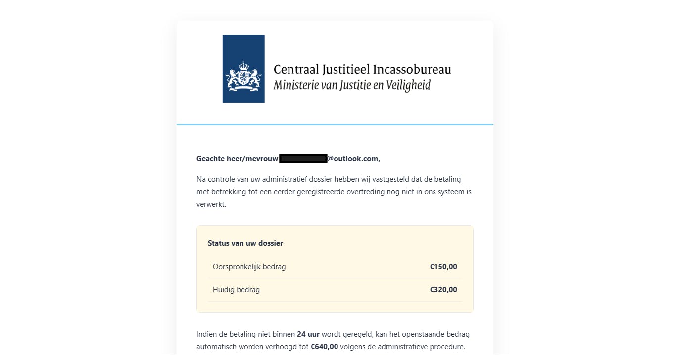 Nieuwe overtuigende valse e-mail van CJIB vraagt honderden euro's over te maken